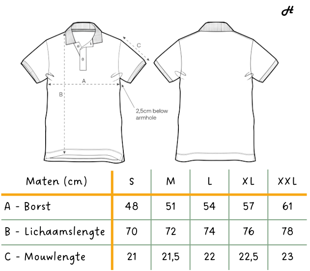 Deze polo is verkrijgbaar in maten van S tot en met 2XL en beschikbaar in 17 kleuren, zodat er altijd een variant is die past bij jouw stijl. Om zeker te zijn van de juiste pasvorm zijn de maten eenvoudig terug te vinden in de maattabel. Twijfel je over je maat? Klik dan hier om de maattabel van de polo te bekijken.